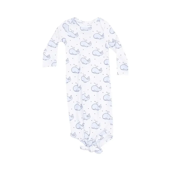 Knotted Gown – Bubbly Whale Blue 0-3M