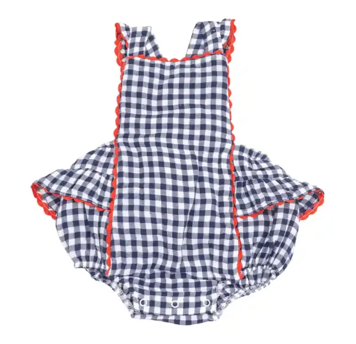 Ric-Rac Ruffle Sunsuit – Navy Gingham