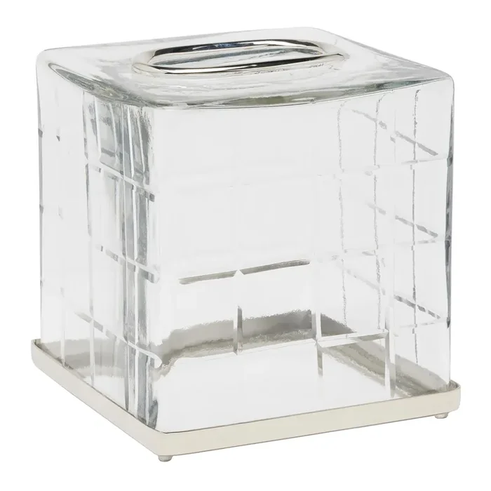 Argos Glass Tissue Box Cover (Clear Glass/Nickel)
