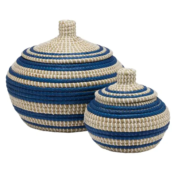 Arley Seagrass Baskets With Lid (Blue/Natural) Set/2