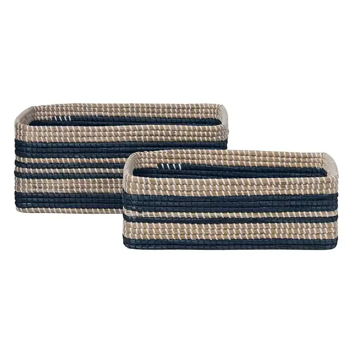 Arley Seagrass Rectangle Basket Set/2 (Blue/Natural)