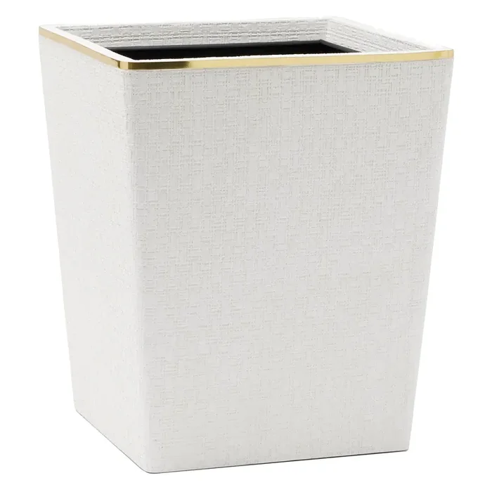 Veria Faux Rattan/Brass Square Wastebasket (Shiny White)