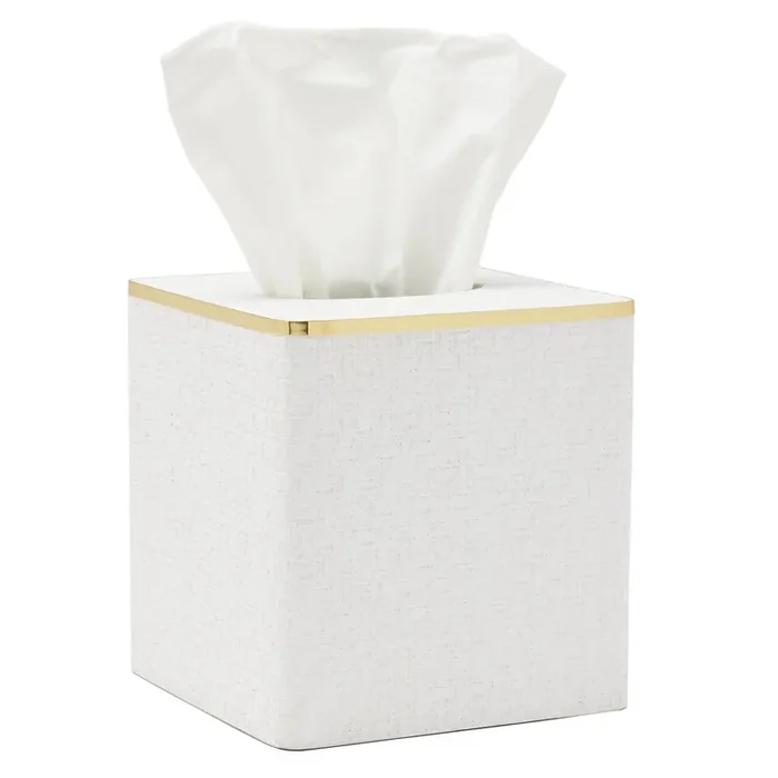 Veria Faux Rattan/Brass Tissue Box Cover (Shiny White)