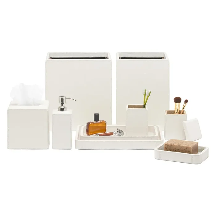 Victoria Full-Grain Leather Bathroom Accessories (White)