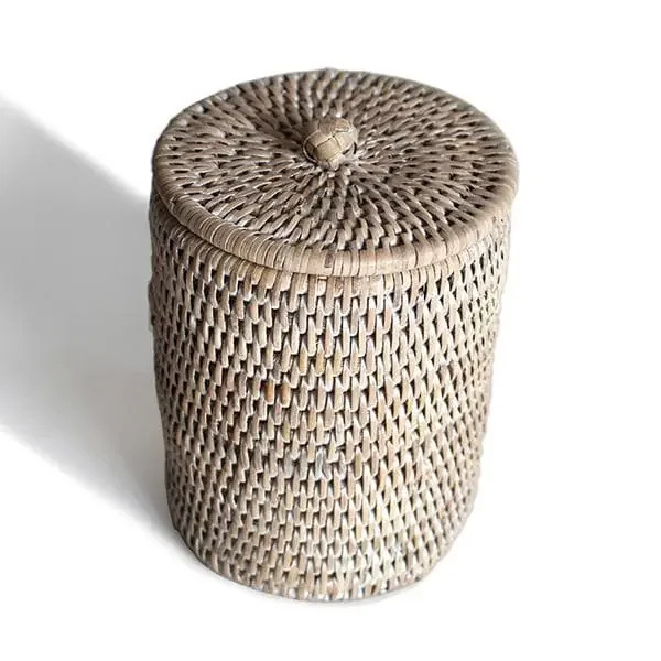 White Rattan Large Bathroom Containers Set/2