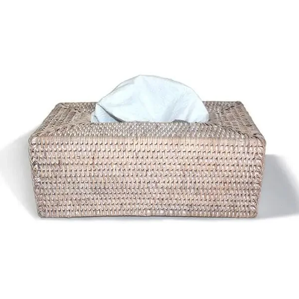 White Wash Rattan Tissue Box Rectangular