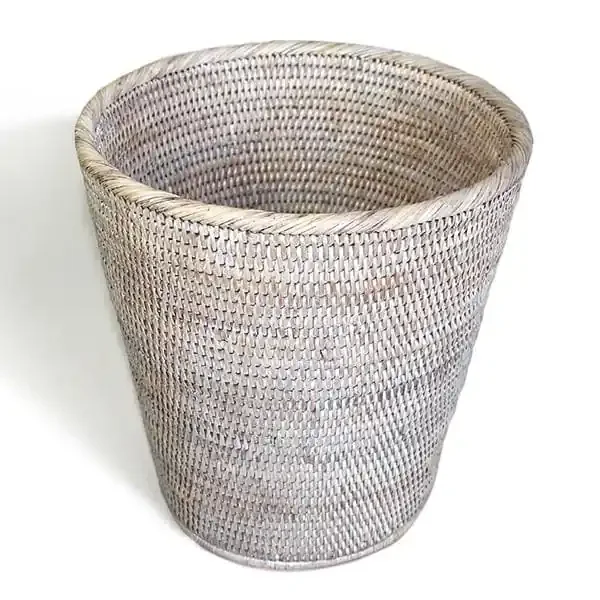 White Wash Rattan Waste Basket Round 12″