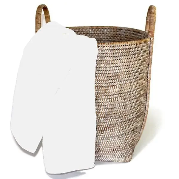 White Washed Rattan Round Laundry Basket w/Loop