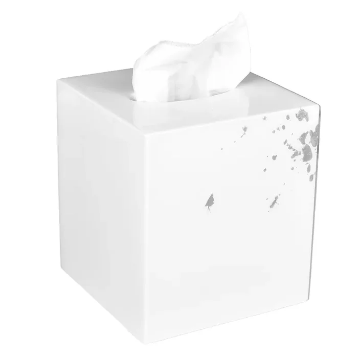 White with Artful Silver Lacquer Tissue Box