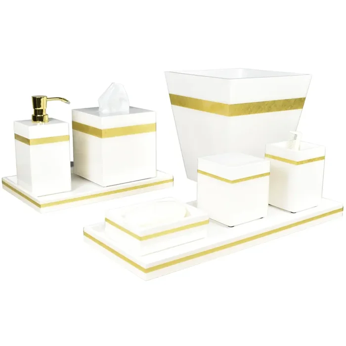 White with Shine Gold Leaf Band Lacquer Bathroom Accessories