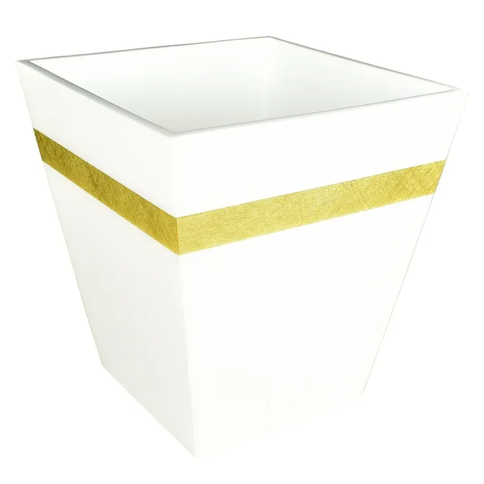 White with Shine Gold Leaf Band Lacquer Waste Basket