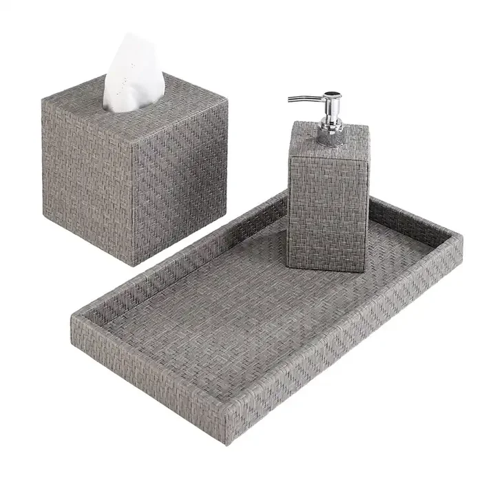 Wicker Vinyl Bathroom Accessories (Gray)