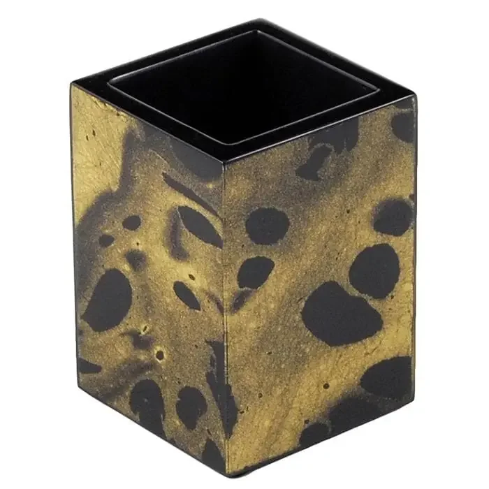 Black Gold Marble Lacquer Brush Holder