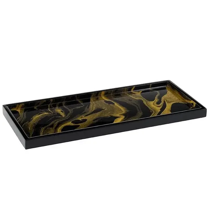 Black Gold Marble Lacquer Long Vanity Tray