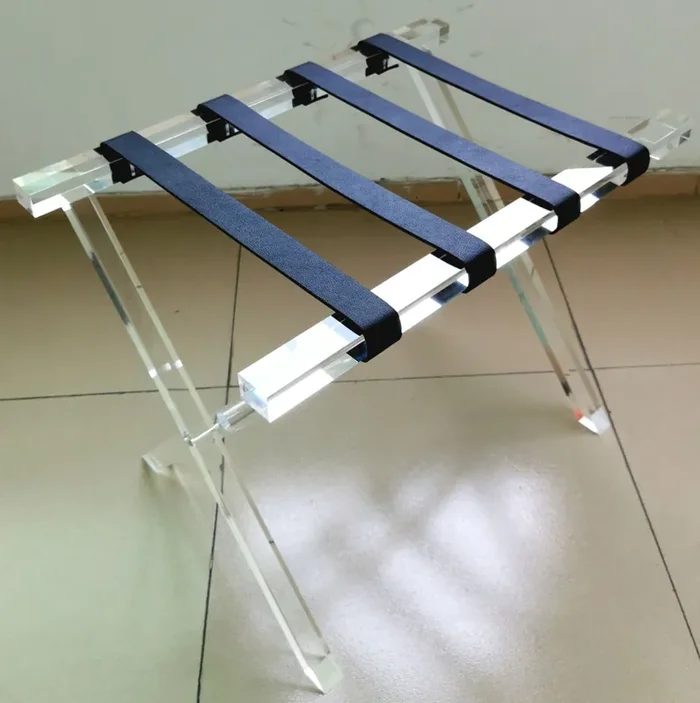 Acrylic Luggage Rack with Black Leather Straps