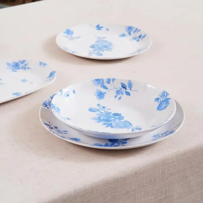 TarHong Cottage Blue Floral Melamine Low Bowl, Set of 6