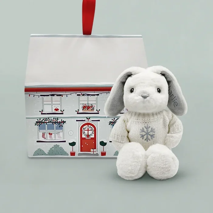 Personalised Christmas Baby Bunny with Christmas Gift Box, Grey