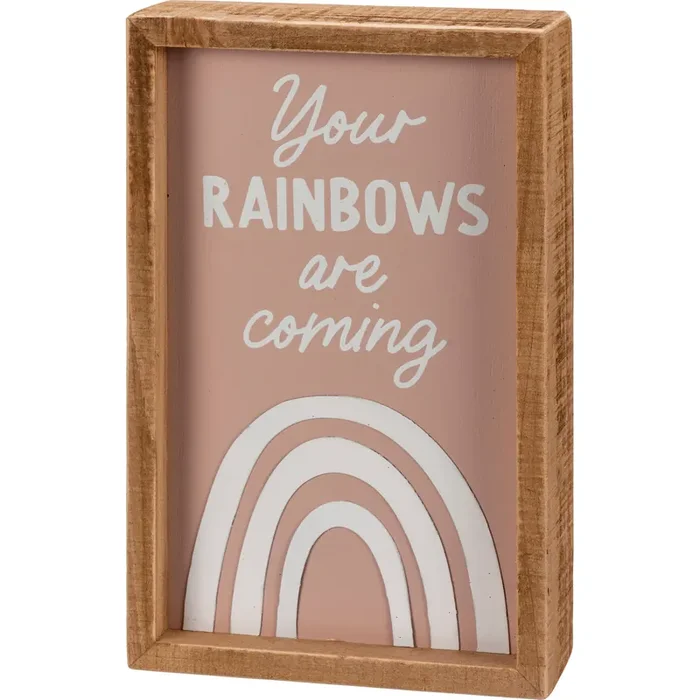 Your Rainbows Are Coming Wooden Box Sign 5″ x 8″