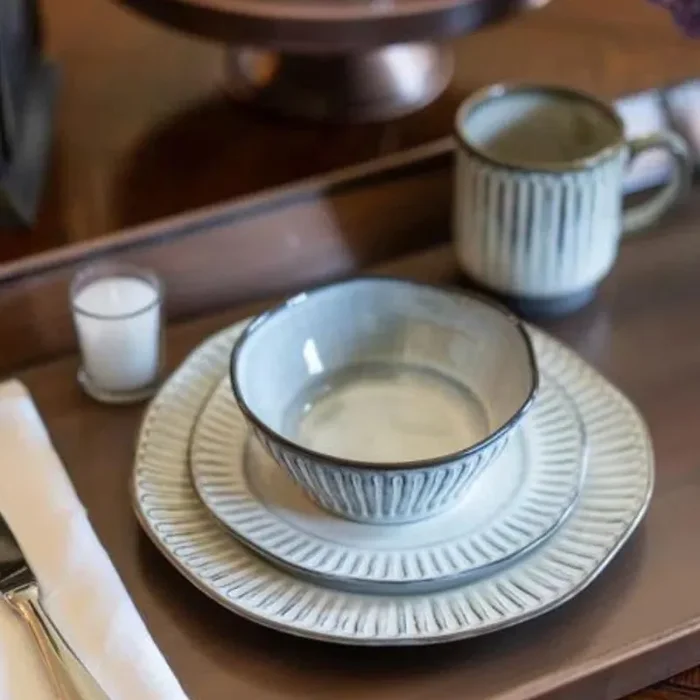 Carmel Ceramica Rhapsody Fog Dinnerware 12-Piece Set