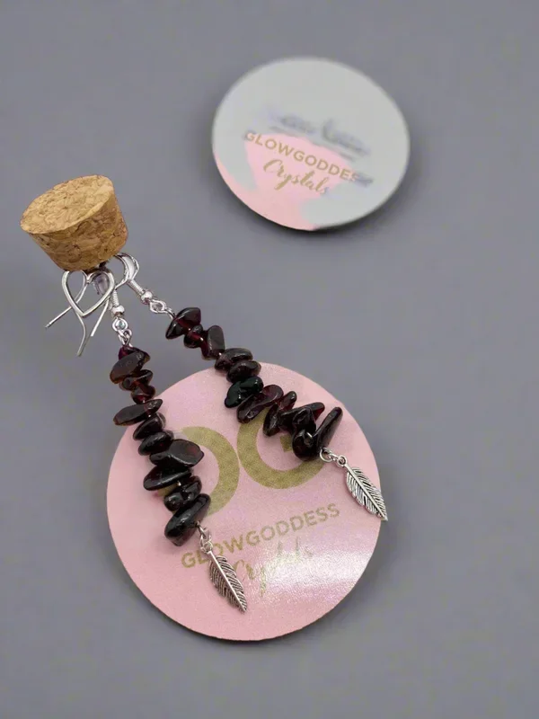 Garnet earrings with feather detail by JENNY21