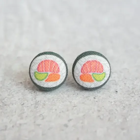 Sushi Roll Fabric Button Earrings Handmade in the US