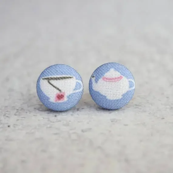 Time for Tea Fabric Button Earrings Handmade in the US