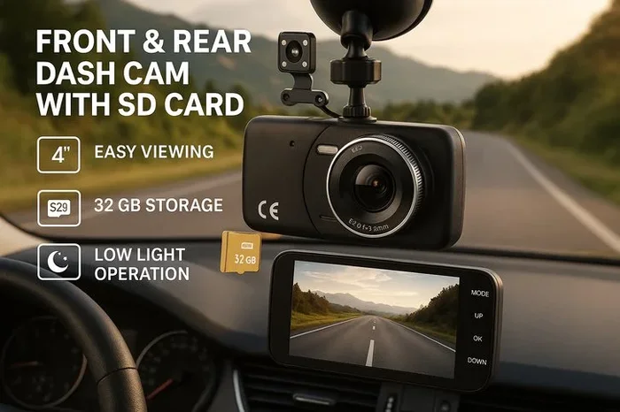 Premium Front & Rear Dash Cam with Flexible SD Card Option