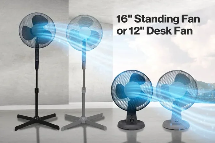 Adjustable Oscillating Pedestal & Desk Fan – Quiet, Energy-Saving, Modern Matt Grey/Black, 16″ & 12″ Options