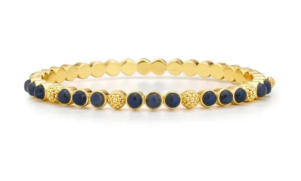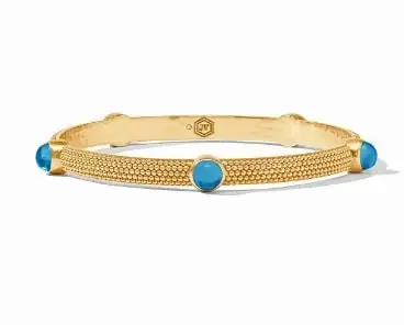 Cabochon Small Gold Bangle – Iridescent London Blue – Julie Vos