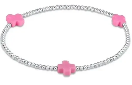Signature Cross Sterling Silver Pattern 2mm Bead Bracelet Bright Pink – enewton