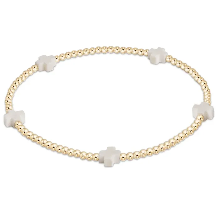 Small Signature Cross Gold Pattern 2mm Bead Bracelet – Gold – enewton
