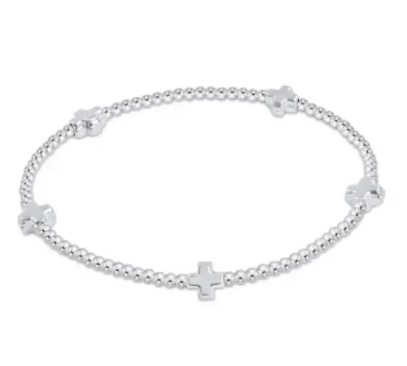 Small Signature Cross Sterling Pattern 2mm Bead Bracelet – Sterling – enewton