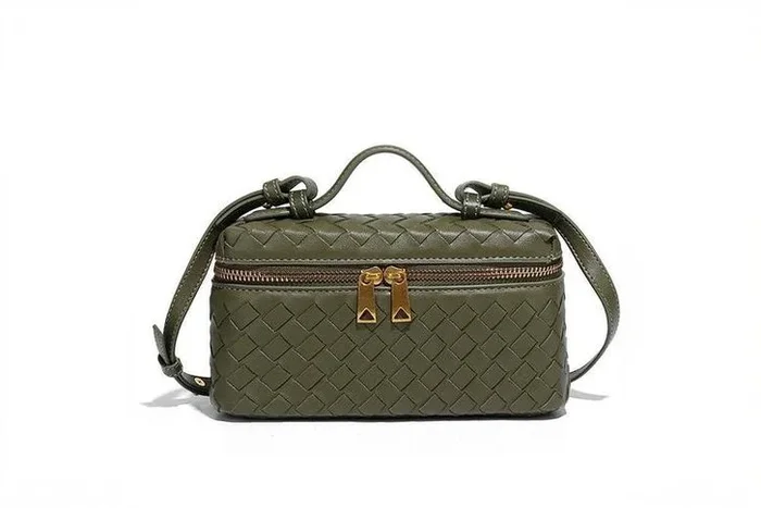 Fashionable Hand-Woven Small Square Bag with Double Zipper & Strap