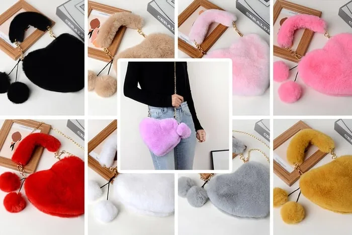 Faux Fur Heart-Shaped Fluffy Satchel Bag – Choose from 14 Colors