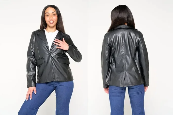 Fawn Nikki Faux Leather Blazer – Classic PU Jacket, Slim Fit, 5 Sizes, 3 Colours
