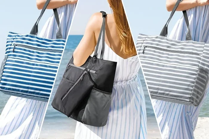 Foldable Waterproof Sandproof Beach Tote with Multiple Compartments