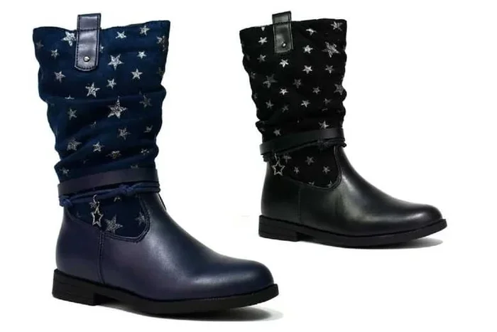 Girl’s Dazzling Shimmer Silver Star Calf Zip-Up Boots