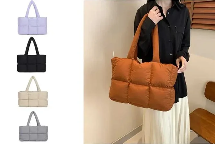 Lightweight Quilted Puffer Tote Bag for Women – Large Satchel Handbag, Polyester, Padded Handles