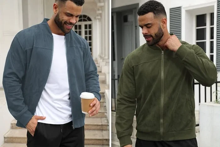 Men’s Lightweight Faux Suede Bomber Jacket – Stretch Fit, Zip-Up, 6 Sizes, 5 Colours