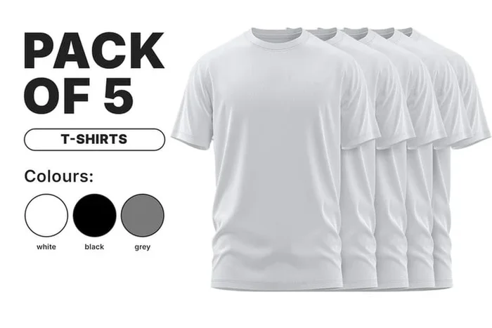 Pack of 5 Men’s Breathable T-Shirts – 7 Sizes & 3 Colours
