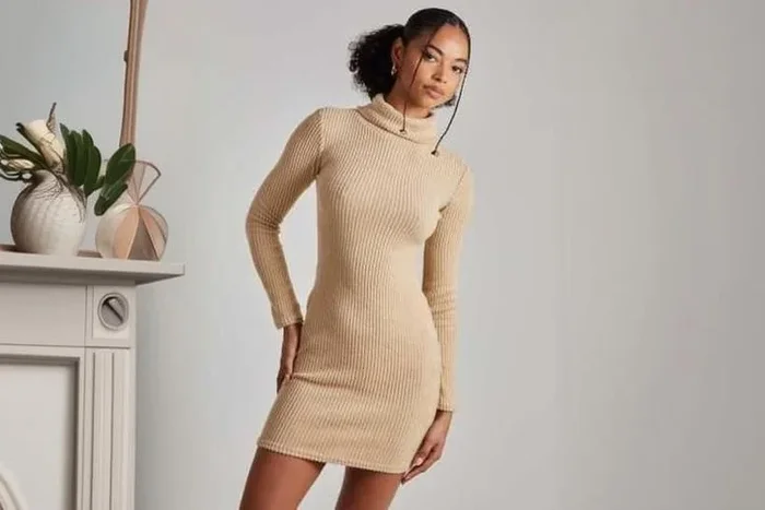 Pink Vanilla Chunky Rib Knit Roll Neck Midi Dress – Long Sleeve, Cosy Winter Fit, UK Made