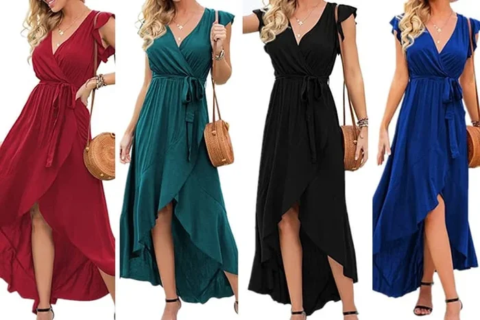 Stunning V-Neck Wrap Slit Dress – Choose from Bold Hues!