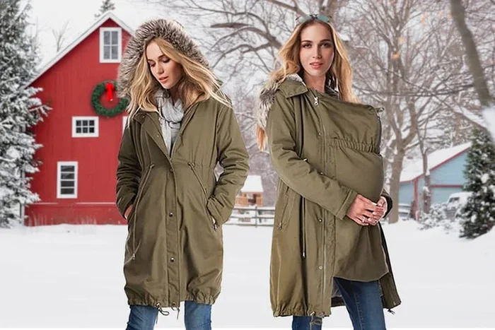 Stylish & Practical Women’s Maternity Coat with Baby Carrier – Black or Army Green