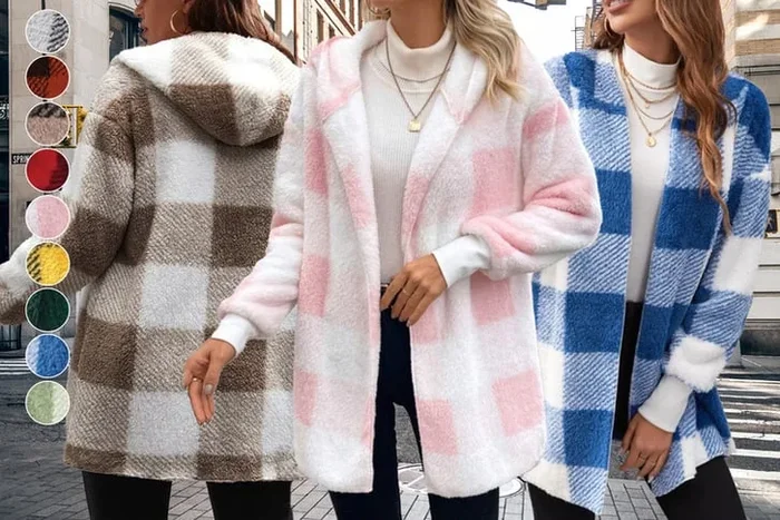 Stylish Block Knit Plaid Winter Cardigan – Cozy Elegance in 10 Colours!