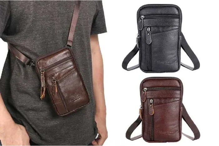 Stylish Men’s Leather Crossbody Phone Pouch