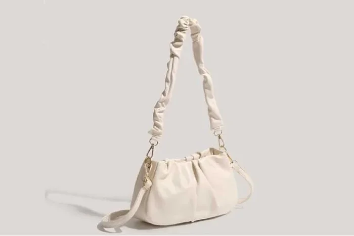 White Pleated Cloud Vegan Leather Underarm Bag – Contemporary Shoulder & Crossbody Purse