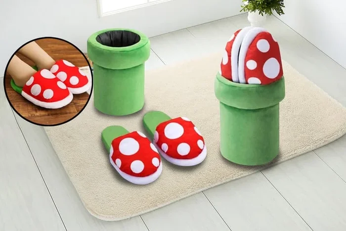 Women’s Plush Mushroom Slippers with Storage Box