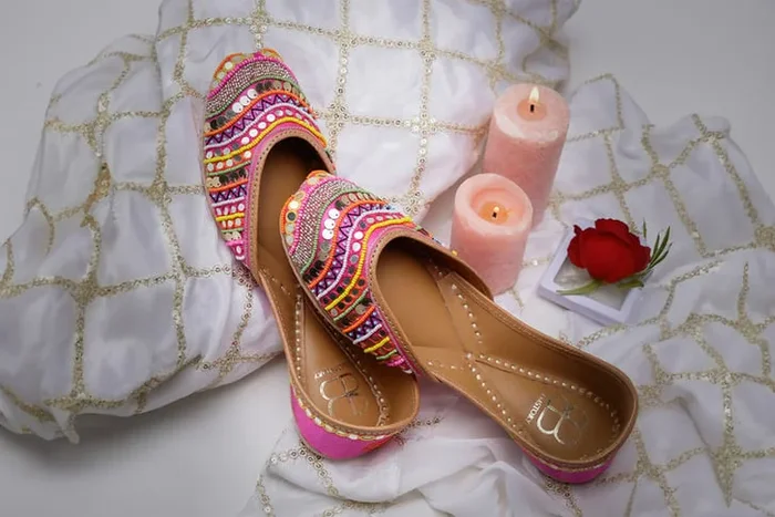 Women’s Pink Leather Embroidered Punjabi Jutti – Handcrafted Ethnic Flats
