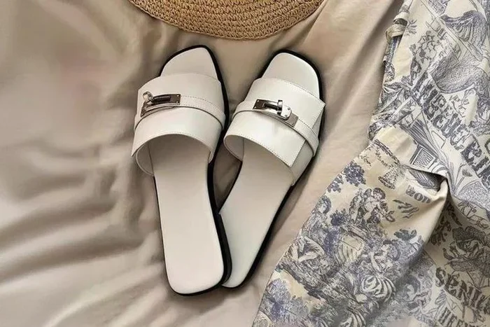 Women’s PU Leather Slip-On Flat Sandals – Casual Summer Minimalist Footwear