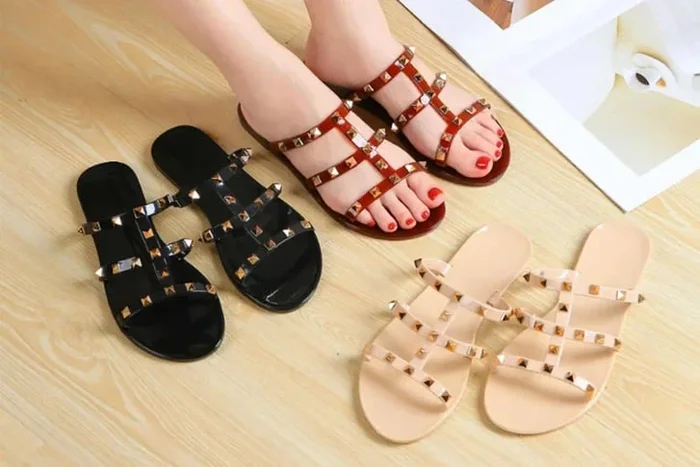 Women’s PVC Slip-On Jelly Sandals – Lightweight Waterproof Summer Shoes with Crystal Rivets, 3 Colours, 7 Sizes
